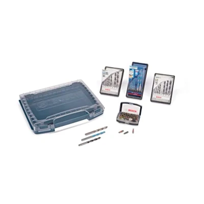Extremely sleek drill bits with centre point for precise positioning of the drill hole. With the precision-ground taps, tear-free holes can be drilled Expert CYL-9 MultiConstruction drill set: up to 5 times more precise than a Bosch CYL-3 drill bit HSS-G DIN338 Metal Drill Bit Sets Robust Line: Precision ground drill bit made of HSS steel for fast work Extra hard screwdriver bit mixed set: 32-piece bit set as a good choice for general work Box contents: 1x RobustLine wood twist drill bit set diameter 3-10 mm, 1x RobustLine CYL-9 multi-construction set diameter 4-12 mm, 1x RobustLine HSS-G metal drill set diameter 1-10 mm, 1x 32-piece bit set, 1x i-BOXX 53 case, Weight: 1.10231131 pounds, Manufacturer: Bosch