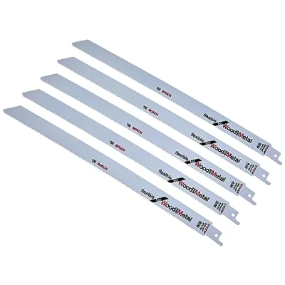 Bosch Professional 5 pieces sabre saw Blade S 1222 VF Flexible for Wood and Metal (Length 300 mm, accessories)
