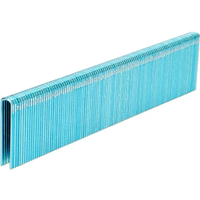 Features: Galvanized Version Galvanised Version, Resin Coated, With Chisel Point Equipped for attaching heat insulation materials, fibre plasterboard, upholstery, steps and handrails For building fences, for door, window and picture frames and for securing wooden floors Narrow crown and barely noticeable spine are especially suited for decorative tasks. Galvanised for corrosion protection The 1.2/18g Narrow Crown Staples are resin coated and feature a chisel point, making them suitable for use as fasteners in a variety of interior fitting applications. They are equipped for attaching heat insulation materials, fibre plasterboard, upholstery, steps and handrails. The staples can moreover be used for building fences and for door, window and picture frames as well as for securing wooden floors. Their narrow crown is especially suited for decorative tasks because their spine penetrates deeply into the wood and is barely noticeable. Furthermore, they are galvanised to protect against
