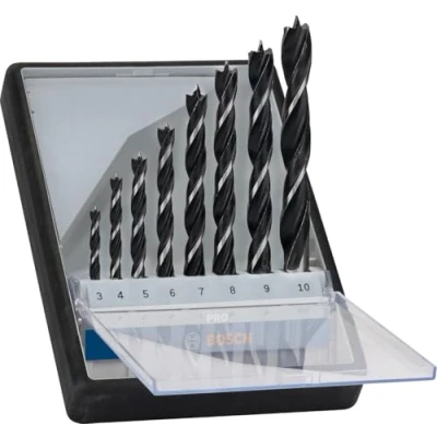 Designed for drilling in wood Highly efficient for carpenters and woodworkers: Precision Cylindrical shank compatible with three-jaw drill chucks For drilling in hardwood and softwood as well as in plastic coated boards, eg when drilling through holes and pocket holes for doweling or furniture assembly Scope of delivery: Bosch PRO Wood Brad Point Drill Bit Set, 8 pcs, Weight: 0.67902376696 pounds, Manufacturer: Bosch