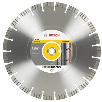 Best for Universal Diamond Cutting Disc provides fast cuts in universal building materials Special Speedteq segment design and 3Dteq diamond arrangement ensures highly rapid cutting Optimised diamond matrix provides fastest cuts in all sorts of building materials Laser-welded diamond cutting segments (15-mm height) are robust for high-speed work Scope of Delivery: 1x Bosch Professional Diamond Cutting Disc, Best for Universal, Ø 400 x 20/25.40 x 3.3 x 15 mm, Weight: 0.2425084882 pounds, Manufacturer: Bosch