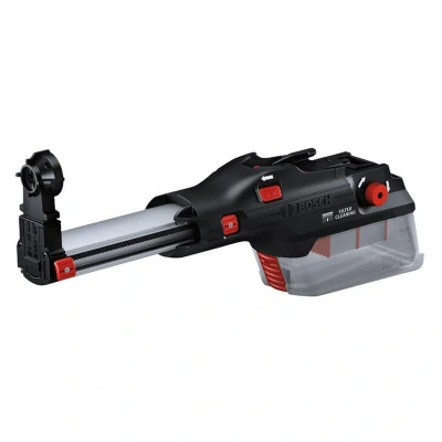 Features: The lightweight integrated dust extractor with filter cleaning mechanism Compact and lightweight design of 0.8 kg with excellent ergonomics, easy one-click assembly and emptying of the dust box Filter cleaning mechanism and HEPA filter helps maintain constant airflow and provide outstanding dust extraction results Two interchangeable dust eyes make it ideal for a wide range of jobs Lightweight integrated dust extraction: the GDE 28 D Professional. With a very compact and lightweight design of only 0.8 kg, it offers excellent ergonomics. It can be easily assembled by just one click, and emptying of the dust box is convenient without removal of the filter. Its filter cleaning mechanism that taps out the high-quality HEPA filter helps maintain constant airflow and provides outstanding dust extraction results. Highly flexible thanks to two interchangeable dust eyes for drilling up to 28 mm in diameter and an extension for bits up to 265 mm in length, it is ideal for a wide range