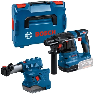 General description This Bosch GBH 18V-22 Professional hammer drill is designed to enhance comfort and reduce strain while drilling, even in overhead applications. Its compact and lightweight design, along with an ergonomic center of gravity, allows for easier handling and less fatigue during use. The drill features KickBack Control and Vibration Control to ensure user safety and comfort, while the option to connect to the GDE 18V-12 Professional dust extractor promotes a cleaner working environment. Technical specifications Model: GBH 18V-22 Type: Cordless Rotary Hammer Includes: 1 x GBH 18V-22 Cordless Rotary Hammer with SDS plus Dust Extractor: GDE 18V-12 Storage: 1 x L-BOXX 238 1600A012G2 Depth gauge: 1613001009 Cleaning cloth included Inlay: 1/1 L-BOXX inlay for GBH 18V-22 + GDE 18V-12 1600A02NS8 Usage The GBH 18V-22 is ideal for drilling into concrete and other tough materials. It is particularly effective for overhead drilling tasks, providing users with the ability to work