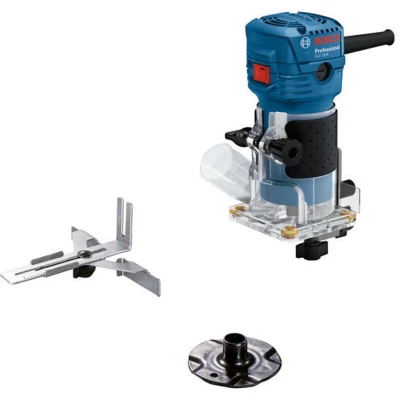 Bosch Professional Palm Router GLF 55 6 (550 W Motor Spinning, 33,000 RPM, incl. 2 x Spanner, 1 Collect, Parallel Guide, Flush Trim Roller)