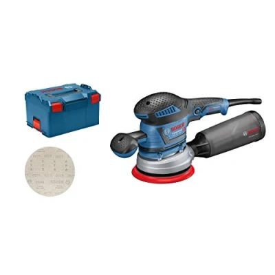 Bosch Professional Random Orbit Sander GEX 40 150 (incl. Auxiliary Handle, dust Box, Sanding disc Dia. mm, M480 net Sheet, Extraction Adapter, in L BOXX 238)