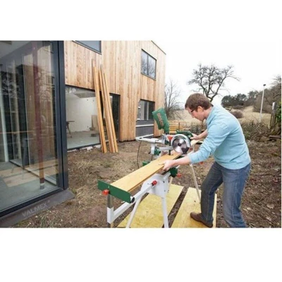 Features: Robust stand at ergonomic height for convenient work Robust side extensions for cutting long panels Work anywhere with physical comfort at ergonomic height Convenient set up at the work location Universal tool holder for PCM, PBD 40, and AdvancedTableCut 52 The PTA 2400 saw stand combines stability and convenience for jobs on location – even with long panels. With a quick set-up, it fixes securely to tools at an ergonomic height. The PTA 2400 saw stand offers flexibility, robustness and comfort for various jobs. It provides a firm, stable hold of tools at an ergonomic height for controlled work. Its robust side extensions provide further support for tasks such as sawing long panels. Easy to set up, it is the ideal solution when working directly on the worksite. It is compatible with the PBD 40 bench drill, PCM mitre saws, and the AdvancedTableCut 52 table saw, which can be attached directly with the universal tool holder included with this saw stand. What's in the box:
