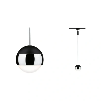 Capsule II LED pendant light in black/chrome for the URail track lighting system Installed in a URail track above a table or counter, the Capsule II LED pendant light provides energy-efficient and pleasantly warm white lighting. The spherical pendant light is also a modern eye-catcher in the room. The combination of matt black and chrome makes the pendant light perfect for use in a black or chrome-coloured track. Several pendants also illuminate a long table, and in combination with other lights for the system, a complete room can be effectively illuminated with a URail track lighting system.