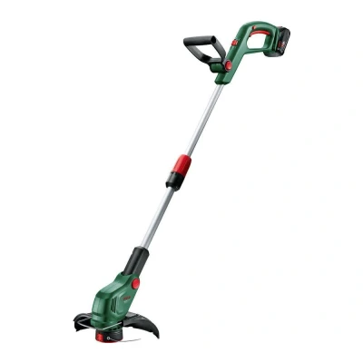 AmazonDesigned for flexible and comfortable lawn trimming and enjoying various garden tasks Semi-automatic spool feeds the line with each trigger release and ensures no need for manual adjustments Telescopic height adjustment provides comfortable handling and maneuvering the tool Due to EdgeSimple function, edging is enabled via tap and twist of the handle Scope of supply: UniversalGrassCut 18V-26-500, 18V 2.0 Ah battery, 18V 20 charger, carton packaging, Weight: 4.40924524 Pounds, Manufacturer: Bosch