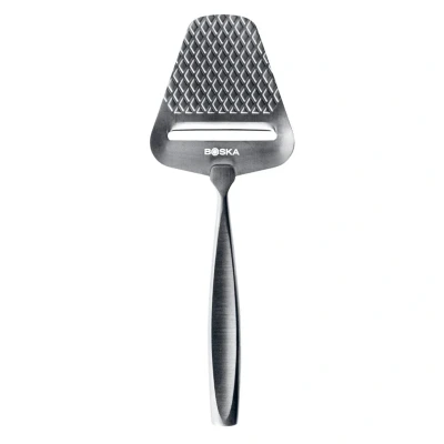 Give your cheese board a stylish upgrade with the Boska Cheese Slicer Monaco+ Special Dark Edition . This premium cheese slicer is specially designed for the true cheese lover and immediately stands out with its modern, matte black appearance. The design is sleek, contemporary and perfectly balanced with the high-quality functionality that Boska is known for. Thanks to the innovative waffle pattern and non-stick treatment, the slicer glides effortlessly through semi-hard and hard cheeses – without sticking or crumbling. Whether you are organizing a cozy drinks evening or just want to treat yourself to a perfectly shaved slice of cheese: with this cheese slicer you bring professional quality into your home, packaged in a stylish jacket. Features and specifications * Material: Stainless steel with matte black coating * Color: Special Dark * Dimensions: 21 cm long, blade 8 x 7.5 cm * Weight: 0.104 kg * Suitable for: Semi-hard and hard cheeses * Special features: Waffle pattern with non-stick effect for smooth shaving. * Maintenance: Dishwasher safe * Packaging: Gift box * Warranty: Lifetime warranty against material and manufacturing defects The Cheese Slicer Monaco+ Special Dark Edition is a special gift for any occasion: a birthday, housewarming or as a stylish gesture for a true cheese lover. A combination of design and quality that is guaranteed to please. Add a touch of elegance to your drinks or dinner – order the Monaco+ Special Dark Edition now and slice your favourite cheeses with class.