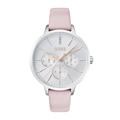 Multifunction Quartz movement with three subeyes Case Diameter 38mm / Case thickness 8.3mm Silver white dial Pink leather strap Water Resistance: 3ATM Faucet spray or rain won’t hurt them as long as the case, crown and crystal remain intact.