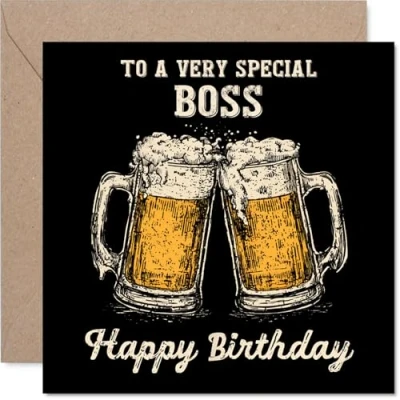 Boss Birthday Card Bday Beer Happy for from Friend Coworker, 145mm Cheers Greeting Cards