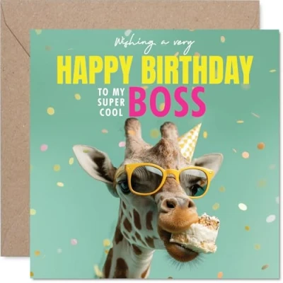 Boss Birthday Card Neck stravagant Day Happy for from Employee Colleague, 145mm funny giraffe Bday Greeting Cards