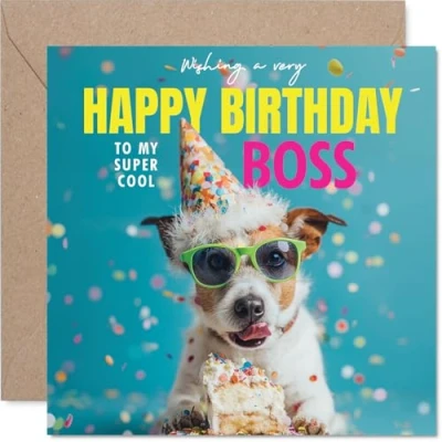 Boss Birthday Card Pawsome Cake Happy for from Employee Colleague, 145mm cool dog Bday Greeting Cards