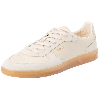 Boss Brandon Tennis Mens Light Beige Trainers Leather Size UK 6