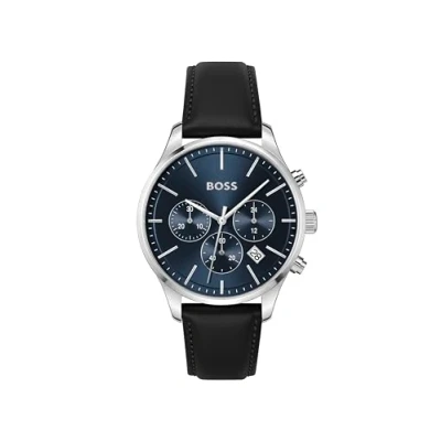 BOSS Chronograph Quartz Watch for Men Avery Collection with Black Leather Strap 1514156