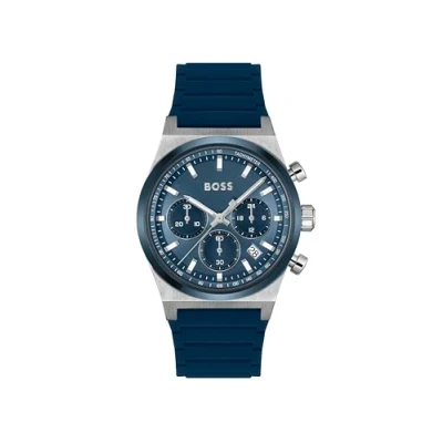 BOSS Chronograph Quartz Watch for Men CANDOR CHRONO Collection with Blue Silicone Bracelet 1514243