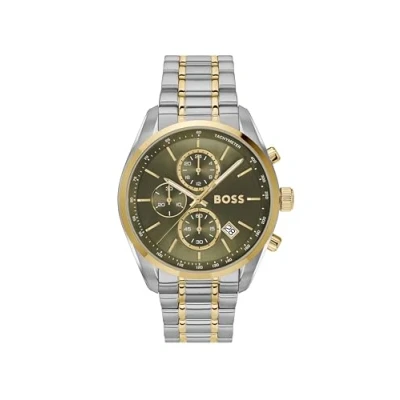 BOSS Chronograph Quartz Watch with Calendar for Men Grand Prix 44 Collection Two Tone Stainless Steel Bracelet 1514227