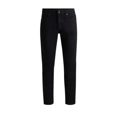 Boss h-delaware Jeans Black Regular-rise jeans with a super-soft feel thanks to a cotton-rich blend. Featuring signature trims, this slim-fitting pair is crafted in a black stretch denim which are perfect for dressing up or down! Slim fit Regular rise Button and zip closure Pockets bottom front: Side pockets Straight leg Pockets bottom back: Patch pocket Standard length Quality: 94% Cotton, 5% Elastomultiester, 1% Elastane