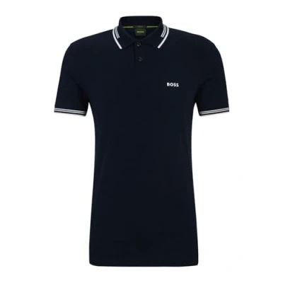 BOSS Green Paul Mens Short Sleeve Polo Shirt With Contrast Tipping NOS Dark Blue Cotton Size X Large