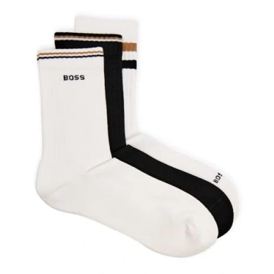 BOSS Iconic 3 PACK Socks, Men's, Size: 9 11, White/black