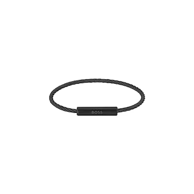 Adjustable Metal Bracelet for men by BOSS Jewelry Material: Stainless Steel with black ion plating (IP) Inner circumference: 18.5 cm plus adjustable till 19.5cm Embellished with Etched BOSS Jewelry logo on the closure Closure: Magnetic