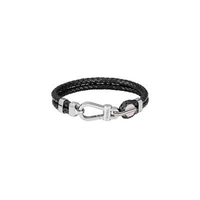 MEN’S LEATHER BRACELET WITH INDUSTRIAL INSPIRATION – A bold evolution of the Ares design, this BOSS bracelet stands out with structured hardware and refined leather. BLACK BRAIDED LEATHER WITH POLISHED STAINLESS STEEL – Two strands of 5 mm braided leather meet a sleek, sculptural stainless steel carabiner for bold contrast. INNER CIRCUMFERENCE: 190 MM ; WIDTH: DUAL 5 MM STRANDS – Designed for a comfortable and confident fit, wrapping the wrist with structure and intention. BOSS ENGRAVED CARABINER WITH STRIKING CONTRAST – The polished clasp is engraved with the BOSS logo and plays against the soft texture of the leather for a look that’s engineered yet refined. SECURE CARABINER CLOSURE FOR EVERYDAY WEAR – Easy to fasten and mechanical in spirit, this closure adds a functional edge to a contemporary classic.