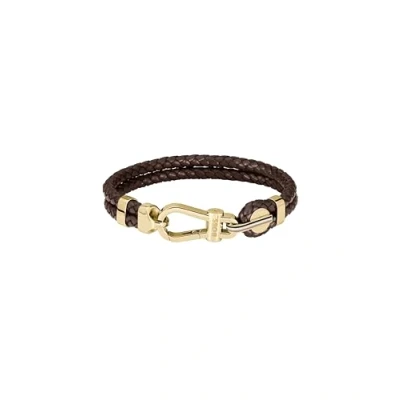 BOSS Jewelry Men's ARES PRIME Collection Bracelet with Brown Leather and Gold Stainless Steel Closure 1580700M