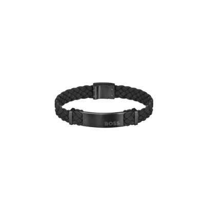 MEN's BRACELET WITH MODERN HERITAGE STYLE - a refined take on a timeless accessory, this BOSS bracelet is designed for effortless, everyday elegance BRAIDED SUEDE LEATHER in BLACK - Crafted in premium suede leather with a soft braided texture and a brushed stainless steel logo plate at the center LENGTH: 175 mm; wIDTH: 10 mm - Sized for a comfortable fit, this piece wraps naturally around the wrist with balanced proportions BOSS ENGRAVED PLATE AND SLEEK HARDWARE DETAILS - a brushed logo plate is framed by two metal stays and complemented by a magnetic closure at the back MAGNETIC CLASP CLOSURE FOR EASY STYLING - Polished and practical, this closure allows for secure wear and quick adjustment