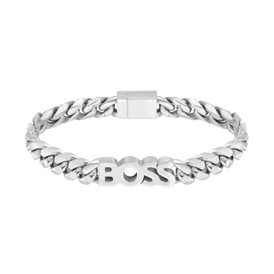 All eyes on the BOSS; created for every BOSS who believes that more is more, the Kassy collection features a statement-making logo chain bracelet Material: Stainless Steel Inner circumference: 19 cm Taking BOSS Jewelry into audacious new territory, these look-at-me pieces feature a bold logo on an heavy curb chain Closure: Magnetic