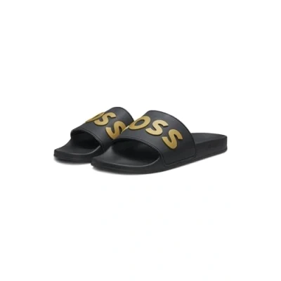 BOSS KIRK Unisex Pool slides, Size: 11, Black seven Pu