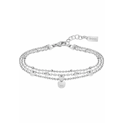 Multi Layer Coin Charm Bracelet by BOSS Jewelry Material: Stainless steel Inner circumference: 16 cm plus adjustable extender 25mm Embellished with crystals Closure: Lobster Claw Clasp