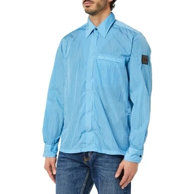 Chest pockets with welt Straight cuffs Made of crinkled fabric with oversized fit Chest welt pocket Felt logo patch