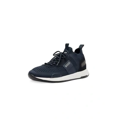 BOSS Men's Mesh Mix Running Sneakers, Sky Captain Navy, 7 UK