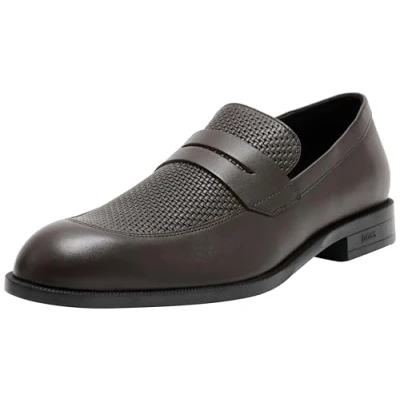 BOSS Men's Tayil_Loaf_ltmxwv Loafer, Dark Brown, 9 UK