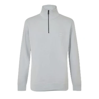 BOSS Men's Zetrust Cotton Terry Sweatshirt with Zip on Collar and Logo Patch, 053light/pastel grey, S
