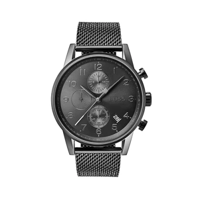 Advanced Quartz Chronograph Movement with Date Function: Experience precision with the BOSS watch’s advanced quartz chronograph movement, featuring a date function and 3 sub-dials for comprehensive timekeeping and enhanced functionality 44mm Stainless Steel Case with 10.60mm Thickness: Enjoy a sophisticated look with the BOSS watch's robust 44mm stainless steel case and sleek 10.60mm thickness, providing a durable and modern design suitable for both everyday and formal wear Elegant Grey Dial: Elevate your style with the BOSS watch’s elegant grey dial, designed to offer a refined and high-contrast display for effortless readability and a sophisticated appearance Stainless Steel Mesh Bracelet with Grey Ion Plating (IP): Add a contemporary touch to your ensemble with the BOSS watch’s stainless steel mesh bracelet, enhanced with sleek grey ion plating (IP) for a modern and fashionable look 5ATM Water Resistance: The BOSS watch features reliable 5ATM water resistance, making it suitable for everyday activities such as showering and swimming, while ensuring durability and long-lasting performance