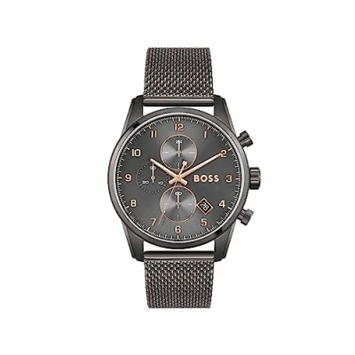 BOSS Men's 44mm Chronograph Quartz Watch SKYMASTER Collection with Grey Dial, Stainless Steel Mesh Bracelet, Date Function, 5ATM Water Resistant 1513837