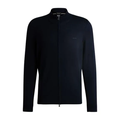 BOSS Mens Balonso L Embroidered Logo Knitted Cardigan in Virgin Wool Blue