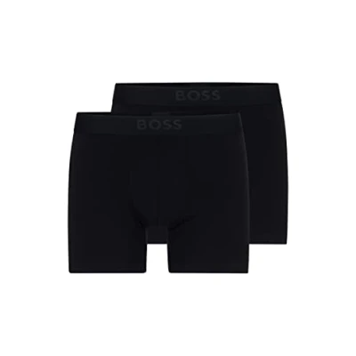 BOSS Mens BoxerBr 2P Ultrasoft Two Pack of Logo Waistband Boxer Briefs in Stretch Modal Black