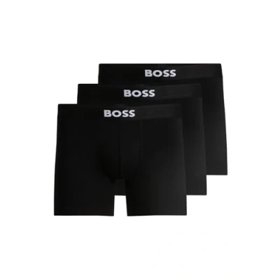 BOSS Mens BoxerBr 3P ONE Three Pack of Logo Waistband Boxer Briefs in Stretch Cotton Black