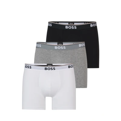BOSS Mens BoxerBr 3P Power Three pack of stretch cotton boxer briefs with logos White