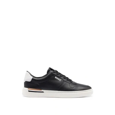 BOSS Mens Clint Tenn Leather Trainers with Logo Details Size 10 Black