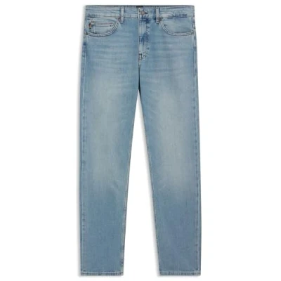 BOSS Delaware Jeans Bright Blue BOSS Delaware Jeans Bright Blue in de kleur Light blue en Blue met een pasvorm Slim-Fit is gemaakt van Cotton en Stretch met een Plain dessin.
