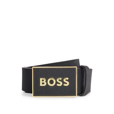 BOSS Mens Icon S1 Plaque buckle belt in Italian leather