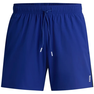 BOSS Mens Iconic Recycled Material Swim Shorts with Logo and Signature Stripe