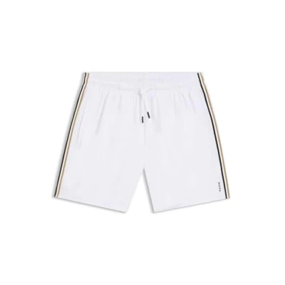 BOSS Mens Iconic Recycled Material Swim Shorts with Logo and Signature Stripe