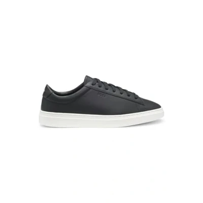 BOSS Mens Kieran Tenn Leather Trainers with Rubber Sole Size Black