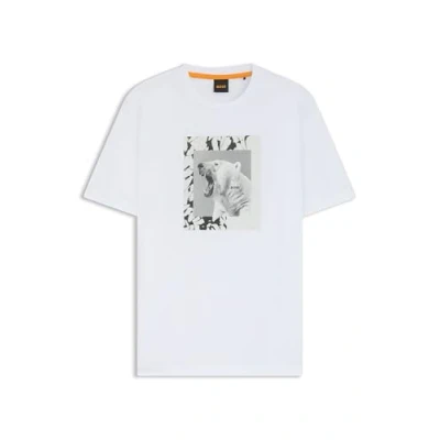Effortlessly combining comfort with refined style the BOSS Te Lupo T-Shirt is a modern essential for any wardrobe Featuring a unique polar bear graphic on the front this piece creates a distinct eye-catching look Ideal for casual outings smart-casual events or weekend wear Product Highlights:- A round neck and short sleeves for added comfort - The regular fit provides freedom of movement Composition: Cotton Care: Machine washable on a cold cycle T-Shirts