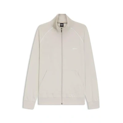 BOSS Mens Mix&Match Jacket H Embroidered Logo Zip up Hoodie in Stretch Cotton