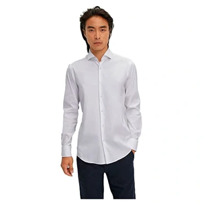 BOSS Mens P HANK spread C1 222 Slim fit Shirt in Easy Iron Cotton Blend poplin White